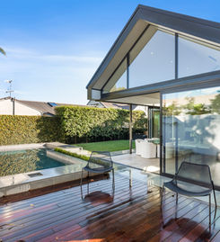 Step into an entertainer's dream kitchen, thoughtfully designed with both formal and informal seating areas. The unique glass corner can be pulled back to extend your living space outdoors, where you'll find a private courtyard and swimming pool.